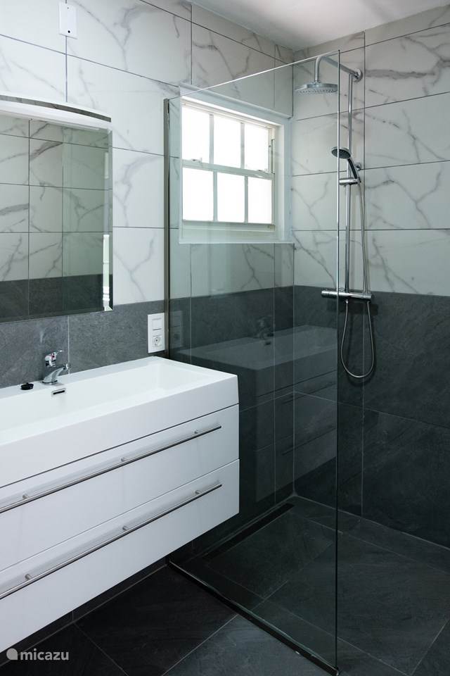 The modern kitchen is equipped with the necessary utensils. Such as a fridge/freezer, gas stove, microwave, coffee maker, kettle, cutlery, glassware, pots and pans. The kitchen and bathrooms have hot water.